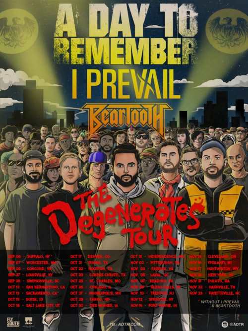 A Day To Remember have revealed a headlining North American tour that will take place this fall. Supporting them on the run, which has been dubbed The Degenerates Tour, will be I Prevail and Beartooth. Tickets are on sale now via ADTR.com.