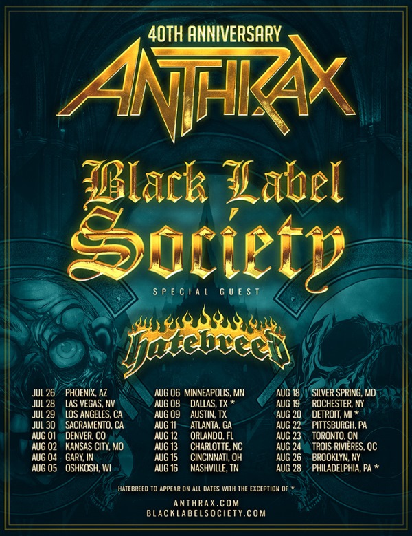 “Anthrax is one of The BESTEST LEGENDARY METAL/THRASH BANDS of ALL TIME — I have been buds with Scotty, Charlie, Frankie & Joey for over 30 years and they are some of the BESTEST people you will meet. Jon is The BESTEST new addition Anthrax could ask for — Hatebreed are The BESTEST HARDCORE/EXTREME METAL band & BESTEST friends w/Anthrax & Black Label Society. The Anthrax + Black Label Society & Hatebreed tour is going to be one of the BESTEST TOURS EVER!!”