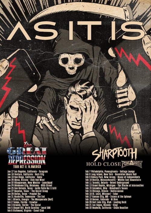 UK alternative rockers As It Is will be coming stateside in January for a tour of North America in support of their new full-length The Great Depression (Fearless). Supporting them on the run will be Sharptooth, Hold Close, and Point North. Tickets and VIP bundles are available now at AsItIsOfficial.com.