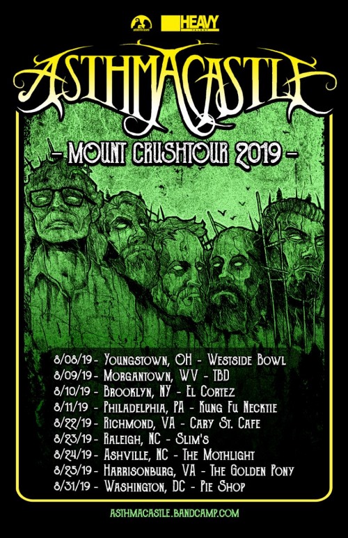 Asthma Castle will embark on an East Coast U.S. tour this week in support of their debut album, Mount Crushmore (Hellmistress). The Mount Crushtour will hit the following cities and venues:
