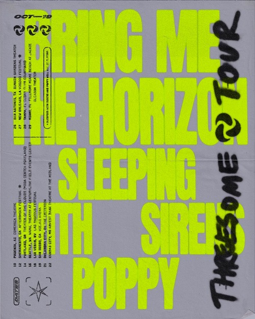Bring Me The Horizon, Sleeping With Sirens and Poppy will tour together this fall under the Threesome Tour banner. Tickets will be available tomorrow, beginning at 10:00 AM local time through BringMeTheHorizon.com.