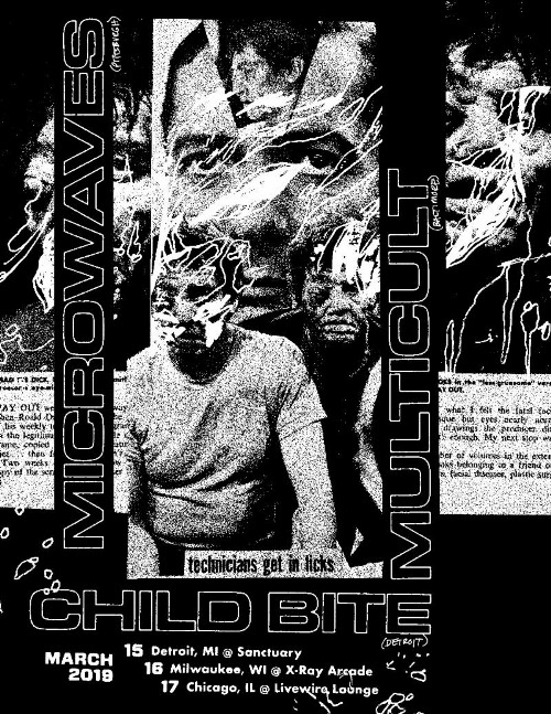 Child Bite will be road testing some of the new tracks during a weekend of Midwest shows with Pittsburgh’s Microwaves and Baltimore’s Multicult. These will be the only Child Bite shows in North America for the first half of the year.