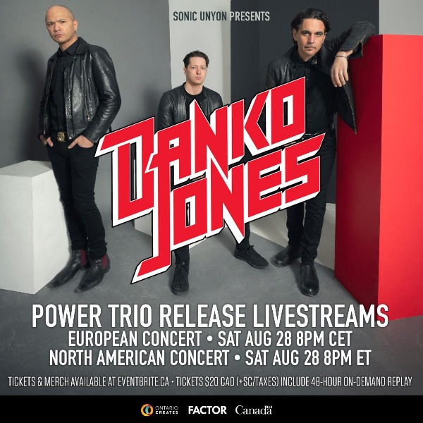 Rock trio Danko Jones have announced two livestream performances in celebrations of their upcoming tenth studio record Power Trio, which arrives August 27th through Sonic Unyon Records. The livestreams are scheduled for Saturday, August 28th at 8:00 PM CET/2:00 PM ET/11:00 AM PT and again at 2:00 AM CET/8:00 PM ET/5:00 PM PT and the same day. They will be streamed live from Bridgeworks in Hamilton, Ontario. The group will also be doing Q&A for viewers following the performances. Tickets and additional information can be found here.