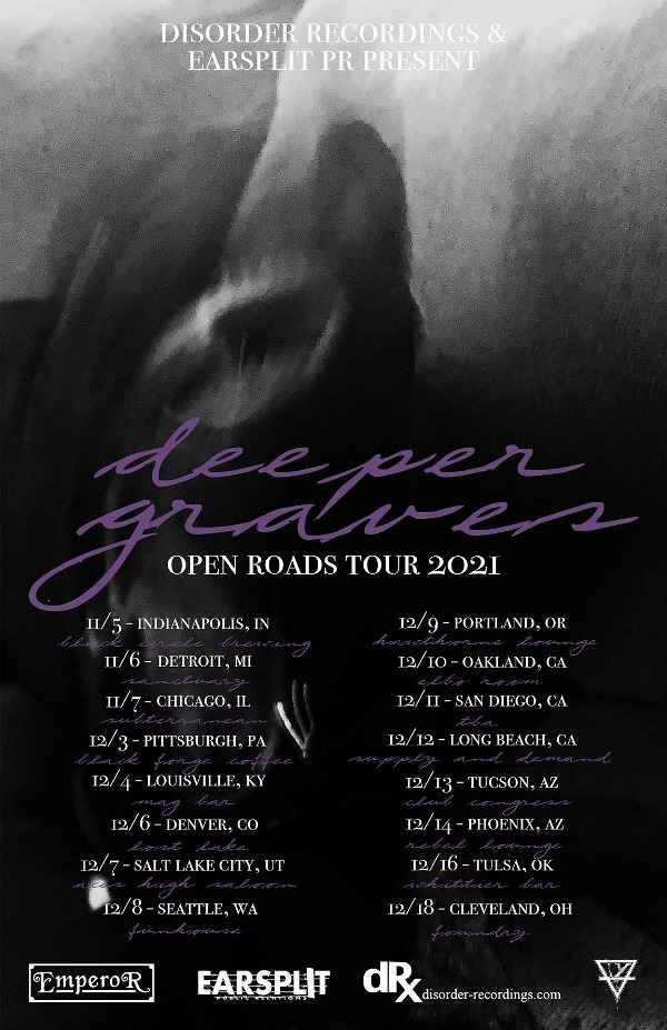 While the follow-up to the debut is being finalized, Deeper Graves announces the outfit’s first tour dates. The Open Roads Tour will originate in Indianapolis on November 5th and will slither across the country in a winding path, ending in Cleveland on December 18th. Additional info on the Deeper Graves set, additional acts on the shows, and more will be issued over the weeks ahead alongside details for the act’s new album.