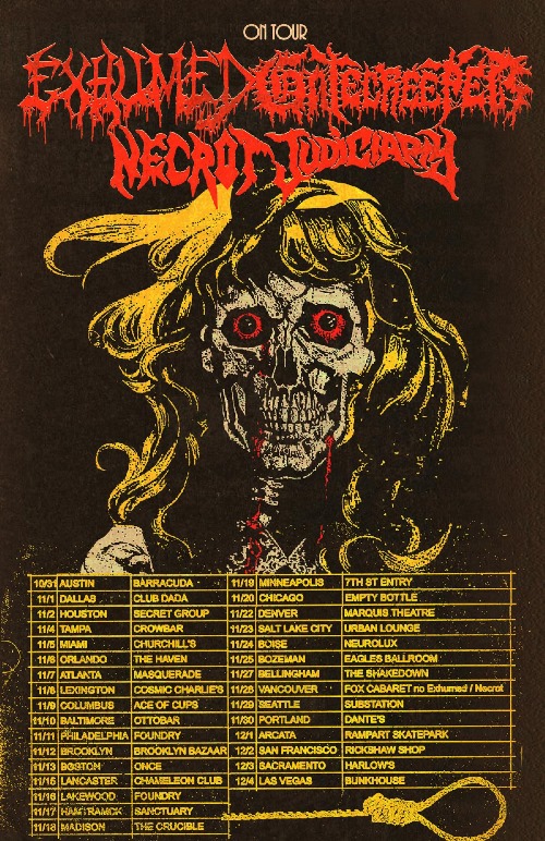 Exhumed and Gatecreeper will co-headline a tour of the U.S. together this fall. The run, which kicks off on Halloween, will feature support from Necrot and Judiciary. Exhumed frontman Matt Harvey said of the trek: