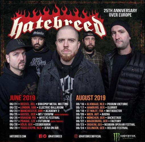 Hatebreed will continue to celebrate their 25th anniversary this summer with a tour of Europe and the U.K. that will take place during the months of June and August.