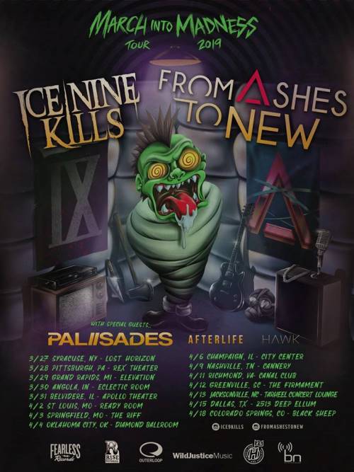 Ice Nine Kills and From Ashes To New will hit the road this spring on the co-headlining March Into Madness Tour. Support on the run will be provided by Palisades, Afterlife, and Hawk. Ice Nine Kills frontman Spencer Charnas said of the trek: