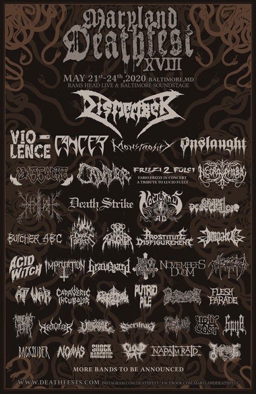 Maryland Deathfest have announced another batch of acts that will be appearing on next year’s installment of the annual festival. The event will take place from Thursday, May 21st to Sunday, May 24th in Baltimore, MD. It will once again be hosted at Rams Head Live and Baltimore Soundstage. The new additions can be found below, followed by the previously confirmed artists. Tickets are available now at this location.