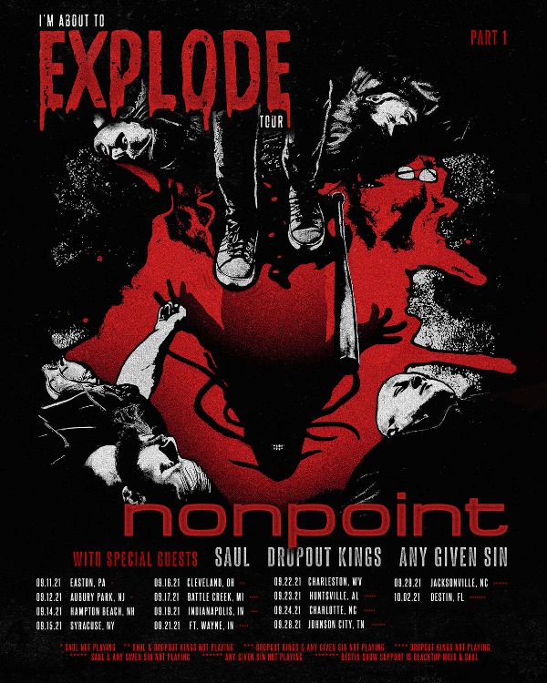 Nonpoint have announced part one of their I’m About To Explode Tour. The September run will feature support from Saul, Dropout Kings, and Any Given Sin. Nonpoint singer Elias Soriano comments: