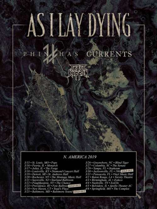 Phinehas, Currents, and Frost Koffin have been confirmed as the openers for As I Lay Dying’s upcoming U.S. tour. Since the tour’s announcement, public outcry over As I Lay Dying frontman Tim Lambesis’ past crime resulted in the April 5th show in Memphis, TN cancelled. It has been replaced with an appearance at the Apollo Theater in Belvidere, IL. Additionally, a handful of shows have already sold out.