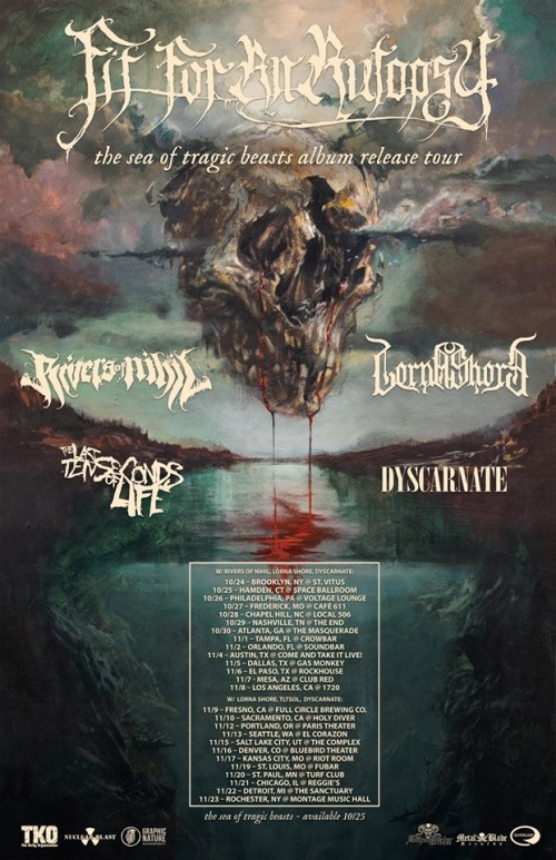 Rivers Of Nihil, Lorna Shore, Dyscarnate, and The Last Ten Seconds have been tapped to support Fit For An Autopsy on their upcoming fall U.S. tour. Lorna Shore and Dyscarnate will appear throughout the length of the tour, while Rivers Of Nihil and The Last Ten Seconds Of Life will be appearing on selects legs of the run. Take note on the dates below and get tickets here.