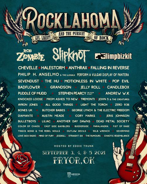 Rocklahoma will make its highly anticipated return this year – taking place on Friday, September 3, Saturday, September 4, and Sunday, September 5 at Pryor Creek Music Festival Grounds in Pryor, Oklahoma, just outside of Tulsa. Previously taking place over Memorial Day Weekend, Rocklahoma will celebrate America’s biggest Labor Day Weekend Party in 2021. Now in its 15th year, the three-day camping festival features some of today’s top rock artists, including Slipknot, Limp Bizkit, Rob Zombie, Chevelle, Halestorm, Anthrax, Falling in Reverse, and many more.