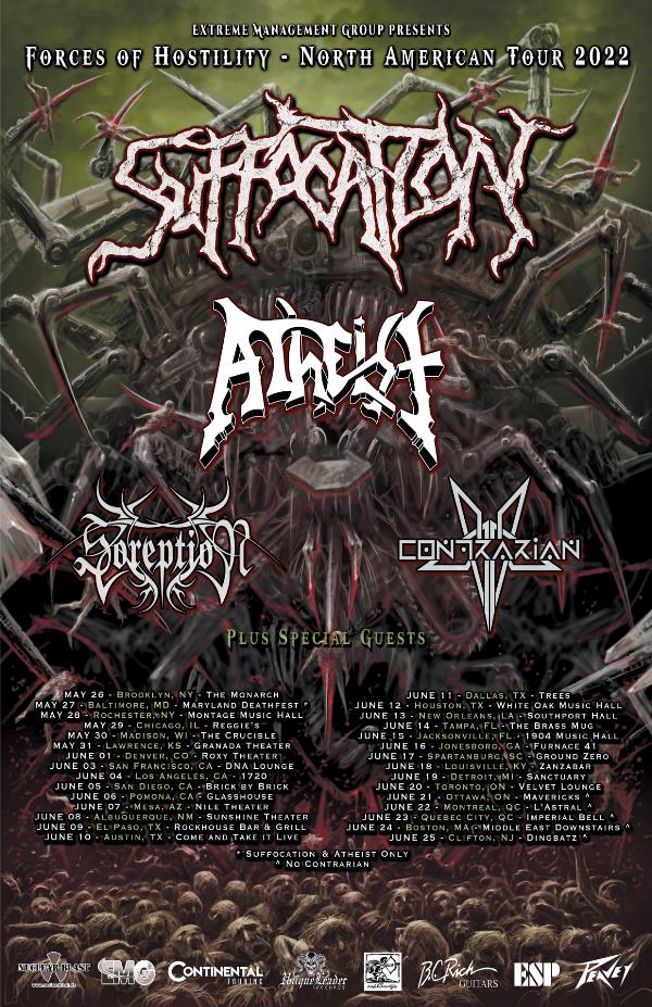 Watch Soreption touring with Suffocation, Atheist, and Contrarian. Full list of dates below.