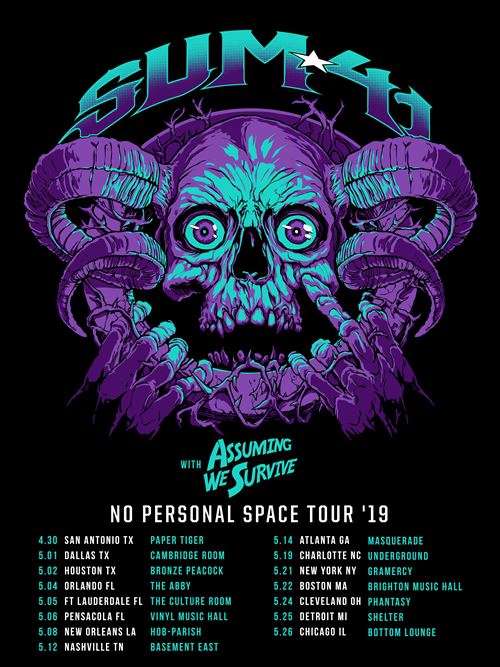 Tomorrow, Sum 41 will hit the road on a headlining North American tour. Supporting them on the No Personal Space Tour will be California’s Assuming We Survive. Dates can be found below and tickets can be purchased here.