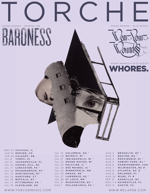 Additionally, Torche have made some changes and announced support on their upcoming tour. Joining them on select dates will be Baroness, Wear Your Wounds, and Whores. You can find the changes to their tour itinerary below.