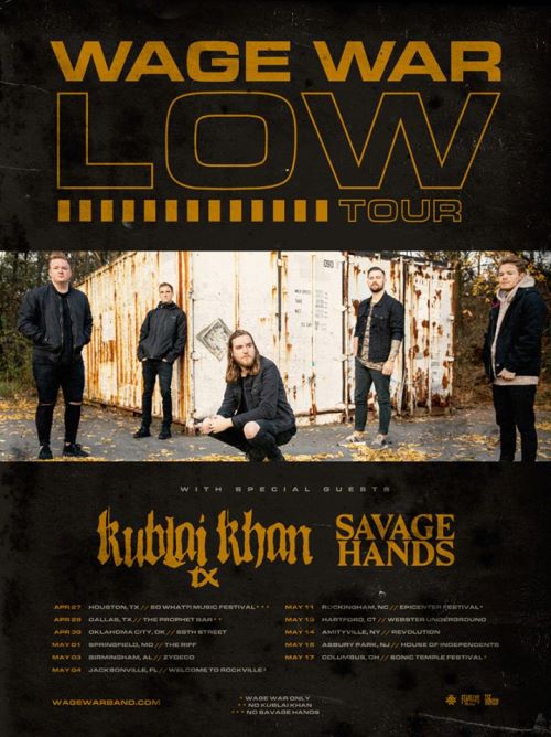 Wage War have booked a handful of headlining dates around their upcoming festival appearances at Welcome To Rockville, Epicenter, and Sonic Temple. Supporting them on the trek will be Kublai Khan and Savage Hands.