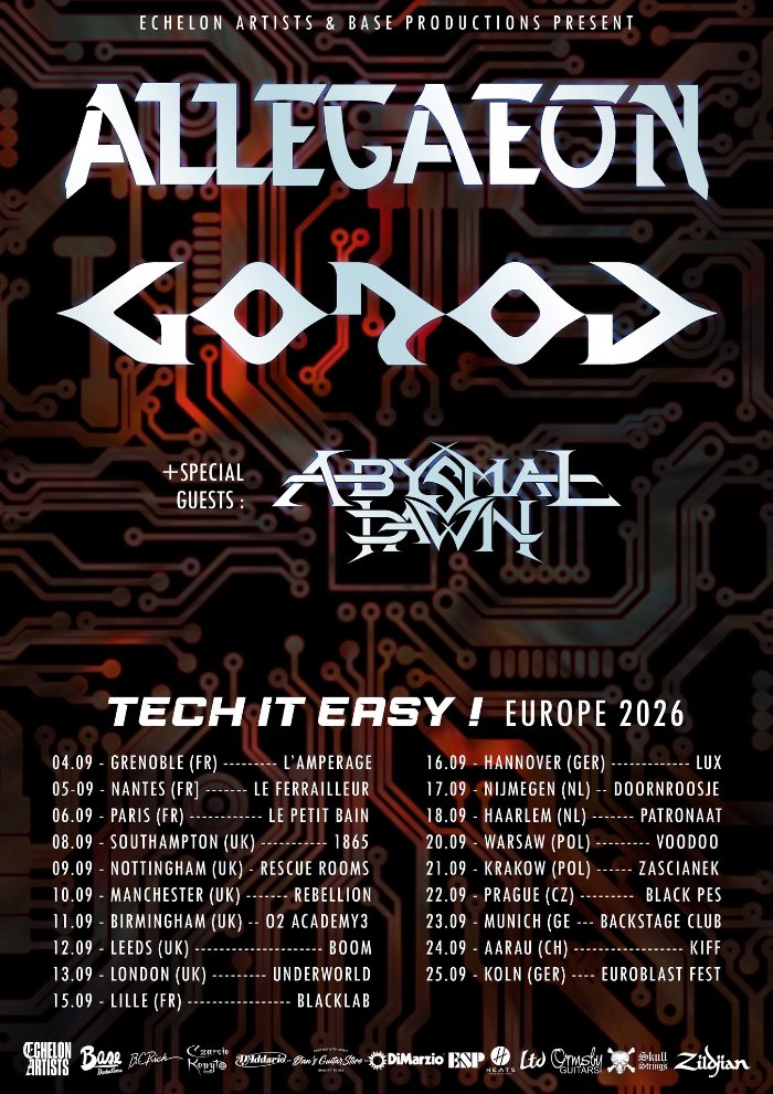 Allegaeon and Gorod will join forces for a September co-headlining tour of Europe and the UK. Abysmal Dawn will open on the trek. Tickets for the Tech It Easy Tour go on sale this Friday, April 3rd at 11:00 AM CEST.