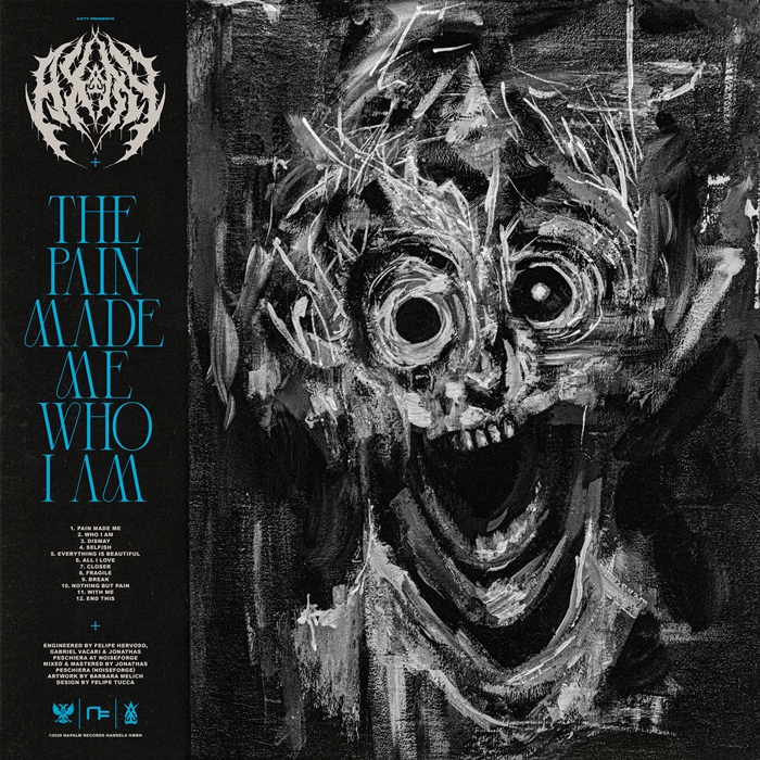 The Pain Made Me Who I Am delivers the goods from note one as earth-shattering intro track “pain made me” pulls out all of the stops — crashing in with dense down-tuned guitar chugs beneath hip-hop charged samples. Anthemic “who I am” showcases the band’s seamless, genre-pushing blend with intense polyrhythmic deathcore passages and soaring metalcore melodies, while tracks like “all I love” incite pure metallic violence with the band’s erratic trademark guitar acrobatics, hypnotic drum patterns and addictive vocals — both crushing and clean — showcasing the broad talents of frontman Felipe Hervoso, drummer Gabriel Vacari, and guitarist Jonathas Peschiera. Particularly, Hervoso’s keen ability to dramatically tilt his vocal approach from crooning cleans to virtually superhuman screams, growls and squeals will have his name on the lips of deathcore vocal enthusiasts in no time. Songs like “nothing but pain” inject heavy doses of the futuristic metalcore fusion AXTY has become lauded for, while album standouts like first single/album closer “end this” weave alternative and even nu-metal flavor into the album’s addictive mix.