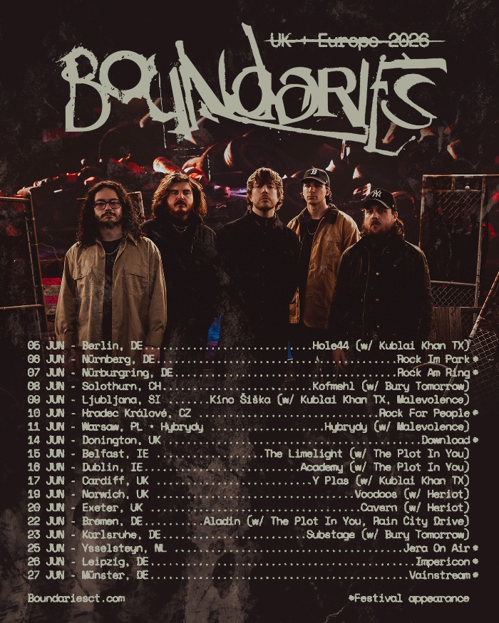 Boundaries will head overseas for a tour of Europe and the UK throughout the month of June. Their plans include appearances at a number of festivals including Rock im Park, Rock am Ring, and Impericon.