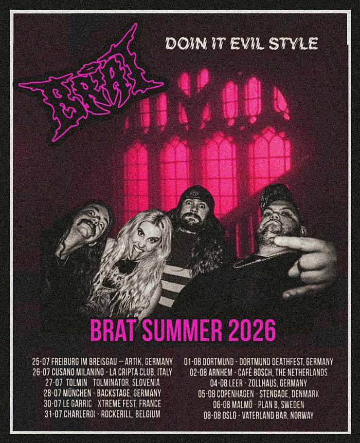 Self-described “bimboviolence” outfit BRAT have announced the routing for a tour of Europe over the summer. The band will be hitting the following cities: