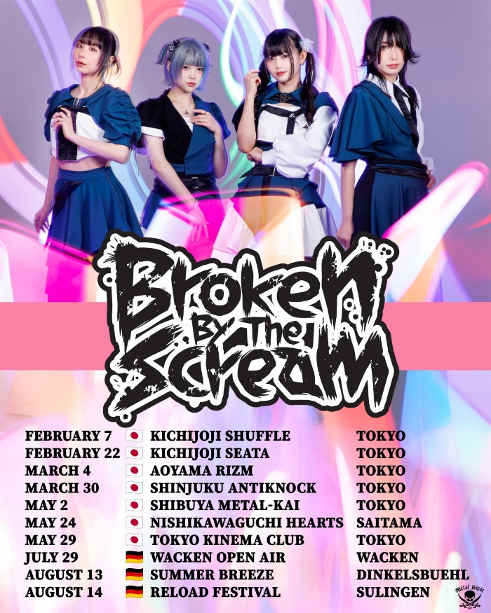 Their distinctive style has continued to shock and captivate heavy music audiences both in Japan and worldwide. In 2025, Broken By The Scream performed on the main stage at Resurrection Fest in Spain and at Japan Expo in France as part of their nine-date European tour across seven countries.