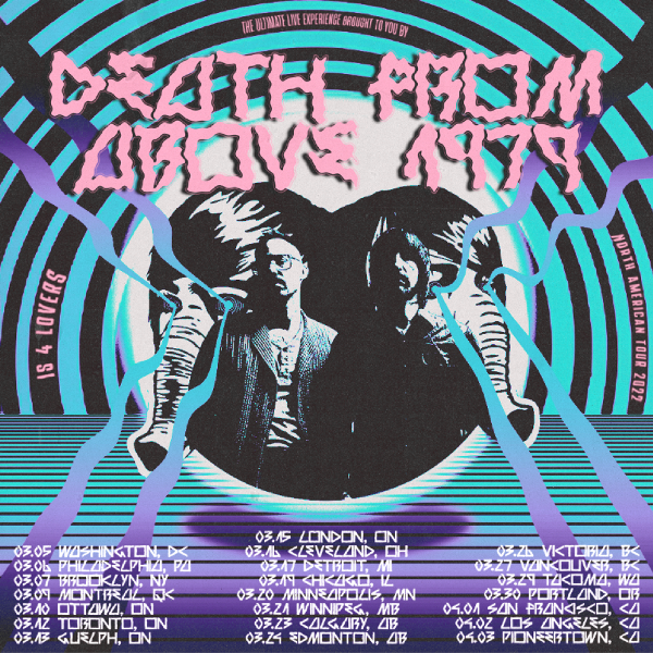 Death From Above 1979 have announced the Is 4 Lovers Tour in support of their fourth studio record, Is 4 Lovers (Universal Music Canada). The 2022 run will hit the road next March. Pre-sale for the tour begins today, with general sale kicking off Thursday, July 22nd and Friday, July 23rd. Check local listing for exact on-sale dates and times. You can find links to tickets for your desired stop at DeathFromAbove1979.com.