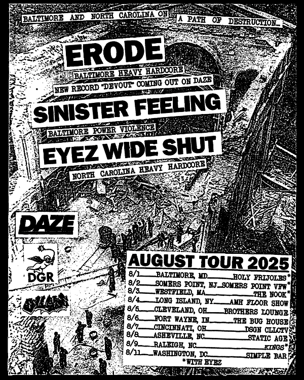 Erode will hit the road with Sinister Feeling and Eyez Wide Shut in early August, kicking of with a record release show on August 1st at Holy Frijoles in Baltimore. Full dates below.