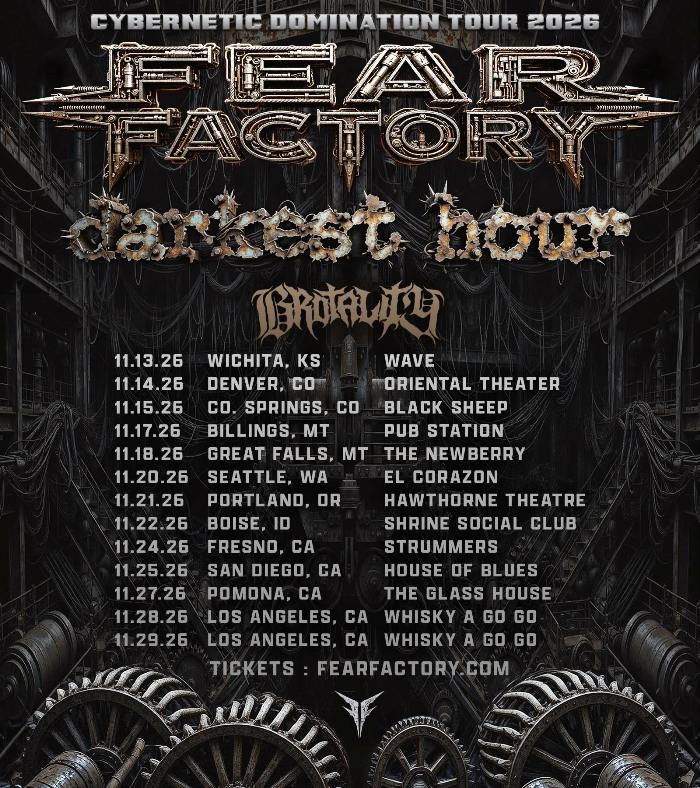Industrial metal veterans Fear Factory will embark on a fall headlining tour of the U.S. this November. Supporting them throughout the Cybernetic Domination Tour will be Darkest Hour and Brotality. Guitarist Dino Cazares said of the upcoming tour:
