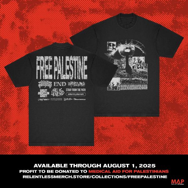A number of bands in the metal and hardcore scene have teamed up for a benefit shirt to raise money for Medical Aid for Palestinians. The shirt will be available for pre-order through August 1st via Relentless Merch. Participating in the effort are: