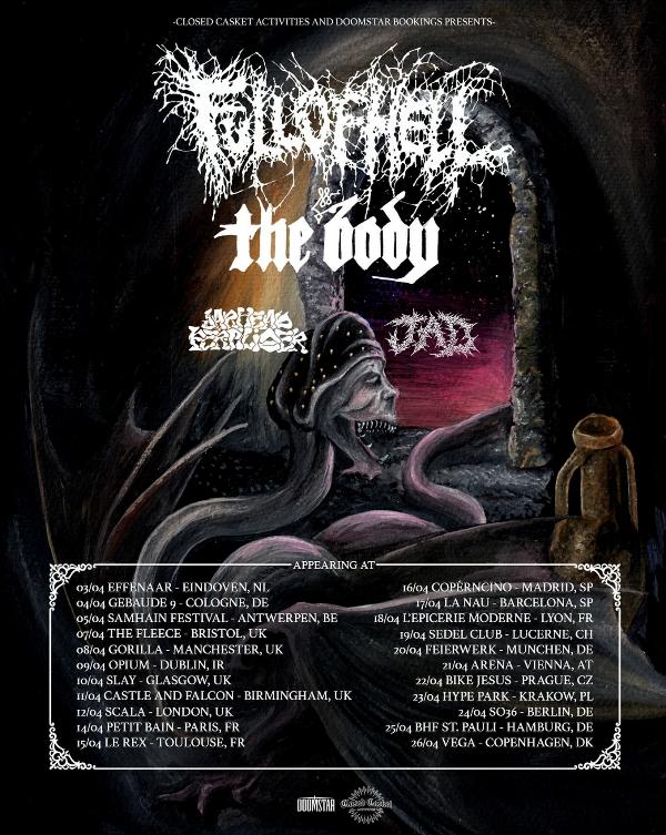 Full of Hell, The Body, Jarhead Fertilizer, and JAD will team up for tour of Europe and the UK that will take place next spring. Tickets for the April trek go on sale tomorrow, June 18th.