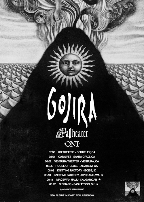 Gojira have announced a string of headlining North American dates. Suppoting them on the summer trek will be Pallbearer and Oni. Tickets are available now at this location.