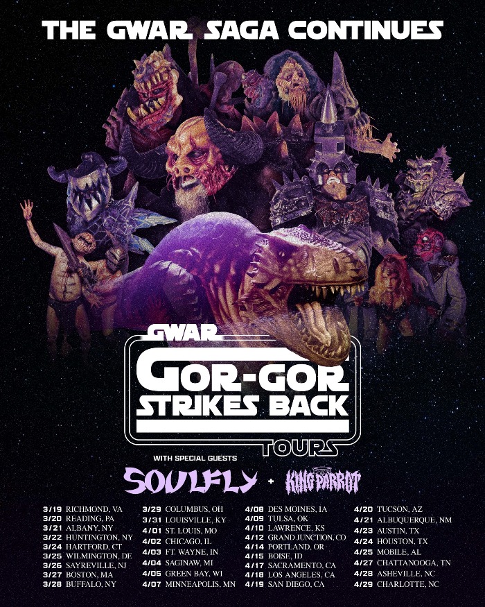 GWAR will hit the road next March with Soulfly and King Parrot on the Gor-Gor Strick Back Tour. GWAR frontman Blothar said of the tour: