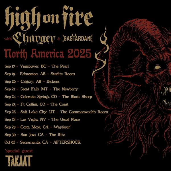 High On Fire have announced a headlining U.S. tour with support provided by Charger and Bastardane. Tickets for these new dates, which kick of in September, go on sale this Friday, August 1st at 10:00 AM PST via this link.