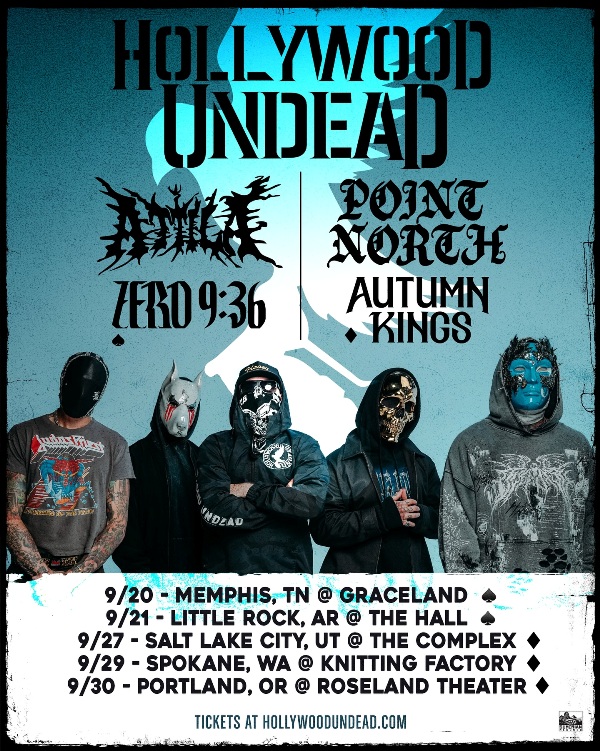 Hollywood Undead have announced a handful of U.S. headlining performances. The September shows will feature support on select dates from Attila, Zero 9:36, Point North, and Autumn Kings. Tickets and VIP packages are on sale now here.
