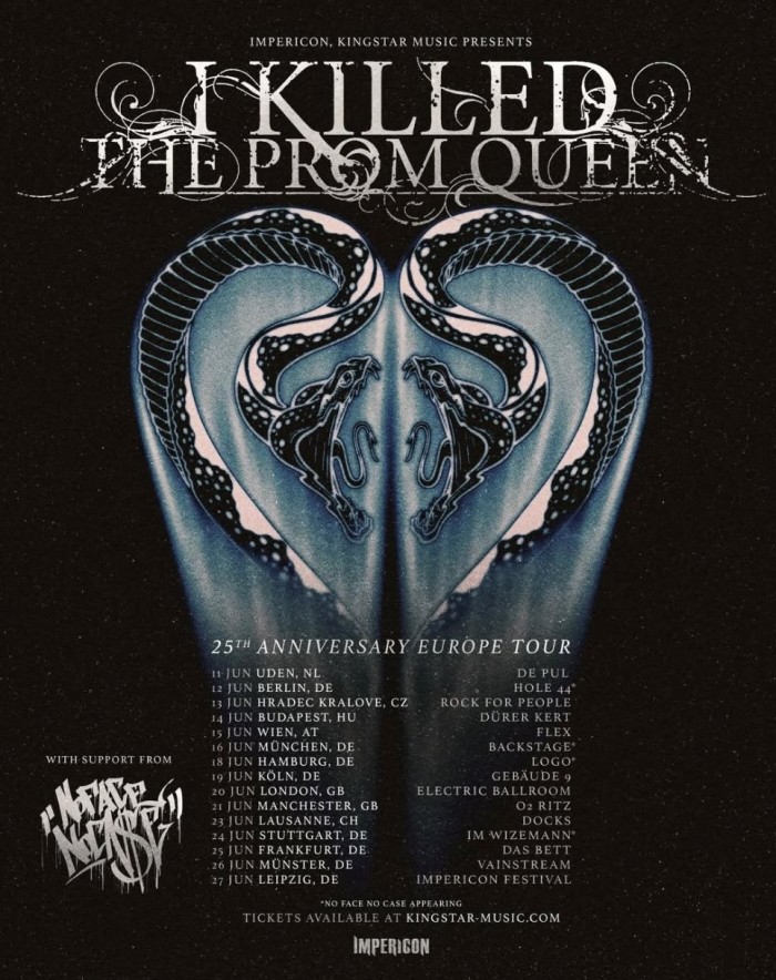 I Killed The Prom Queen have announce a June tour of Europe and the UK as part of their 25th anniversary festivities. Support throughout the run will vary and includes No Face No Case, Hatebreed, Dying Wish, and others. Pre-sales via Eventim and O2 kicked off today. General on sale begins this Monday, March 30th at 11:00 AM CET.