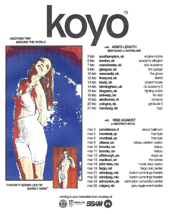 Koyo have extensive touring plans in support of the album, starting with a tour of the UK and Europe that kicks off tomorrow. They will be out supporting Arm’s Length, with additional support by Ben Quad and Shoreline. The group will then return stateside to support Rise Against and Destroy Boys on a North American run. Lastly, they’ll hit the road in June supporting Hot Mulligan on a U.S. tour. That run will also feature Joyce Manor and Saturdays At Your Place. Get tickets here.