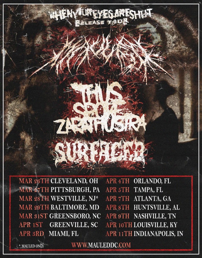 Deathcore unit Mauled have announced a two-week headlining U.S. tour with support provided by Thus Spoke Zarathustra and Surfaced. The trek follows a show supporting VCTMS and The Crimson Armada. Following the headlining run, Mauled have a three-date stint supporting Whitechapel, Entheos, and Tracheotomy. Tickets are on sale now at MauledDC.com.