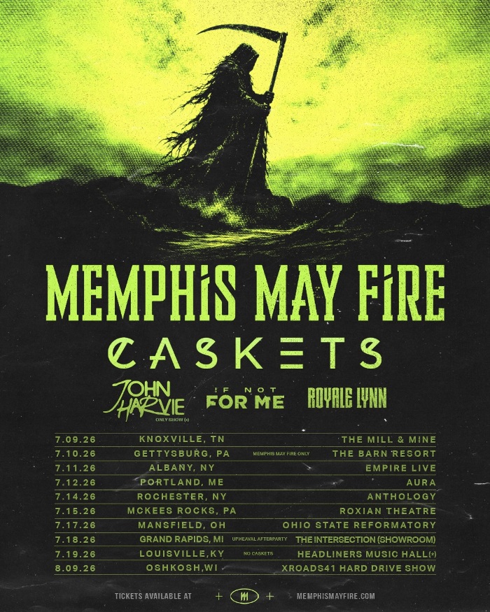 Memphis May Fire will hit the road this July on a headlining U.S. tour. Joining them will be Caskets, If Not For Me, and Royale Lynn. Tickets are on sale now.