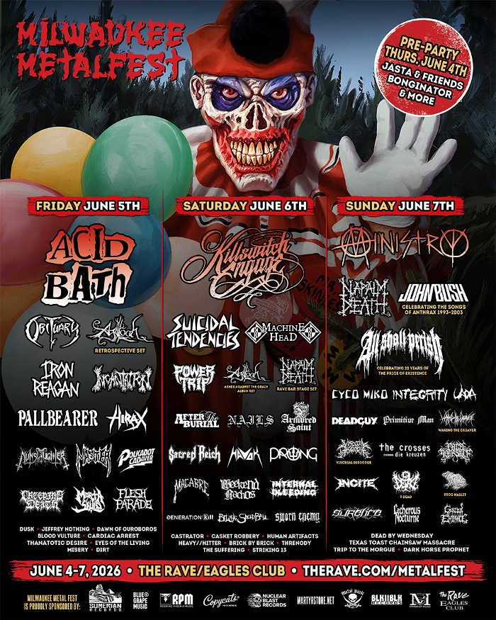 Fans can get access to the Thursday pre-party on June 4 for FREE with the purchase of a 3-day festival pass to Milwaukee Metal Fest. Come see Acid Bath, Killswitch Engage, Obituary, Agalloch + many more for the BEST WEEKEND EVER!