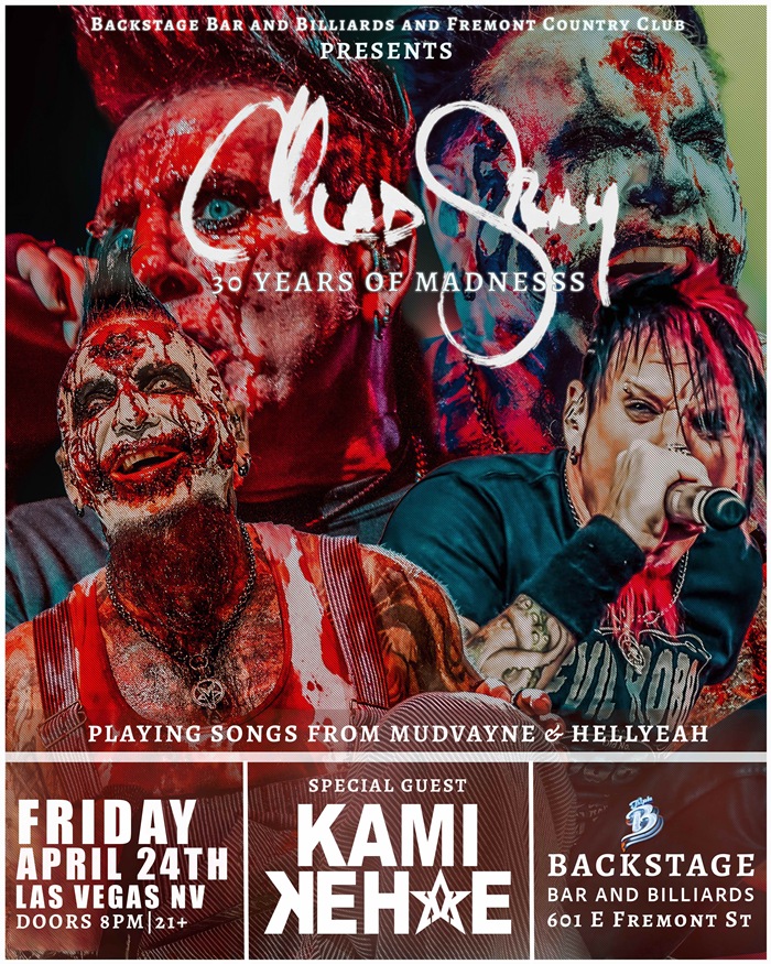 On April 24th in Las Vegas, legendary vocalist Chad Gray of Mudvayne and Hellyeah wants everyone to join him in celebrating 30 Years of Madnesss on April 24th at Backstage Bar & Billiards. This one of a kind event will feature hits of Mudvayne and Hellyeah with special guests Marcus Rafferty (Touring Guitarist for Mudvayne) and Christian Brady (Guitarist for Hellyeah).