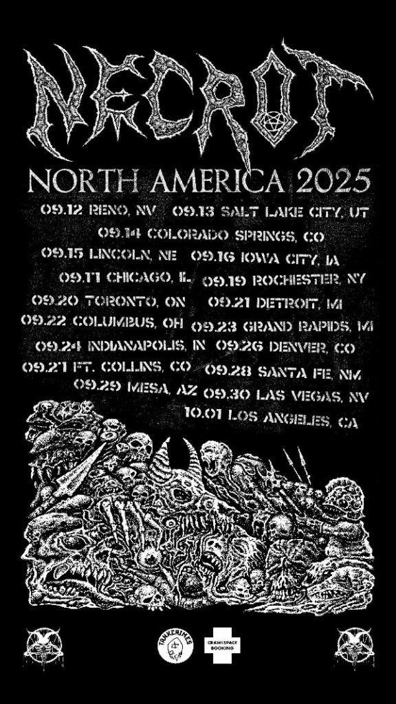 Necrot have announced a handful of headlining shows in the lead up to their upcoming tour supporting Carcass on the North American Putrefaction 2025 Tour. That run will also feature Brujeria and Hedonist. Necrot bassist/vocalist Luca Indrio said of their upcoming run supporting Carcass: