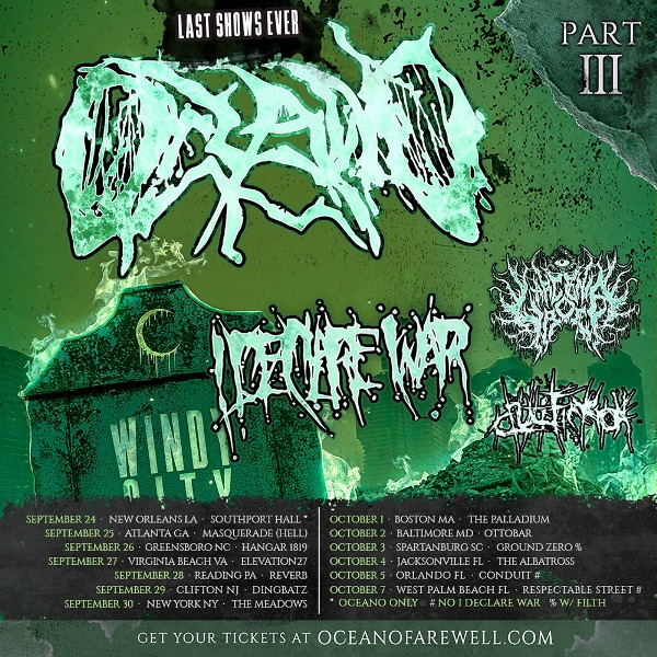 Oceano have announced a third leg of their farewell tour that will focus on the Southeastern U.S. Supporting them on these dates will be I Declare War, LarcɆnia RoɆ, and Crucifiction. Tickets are on sale now here.