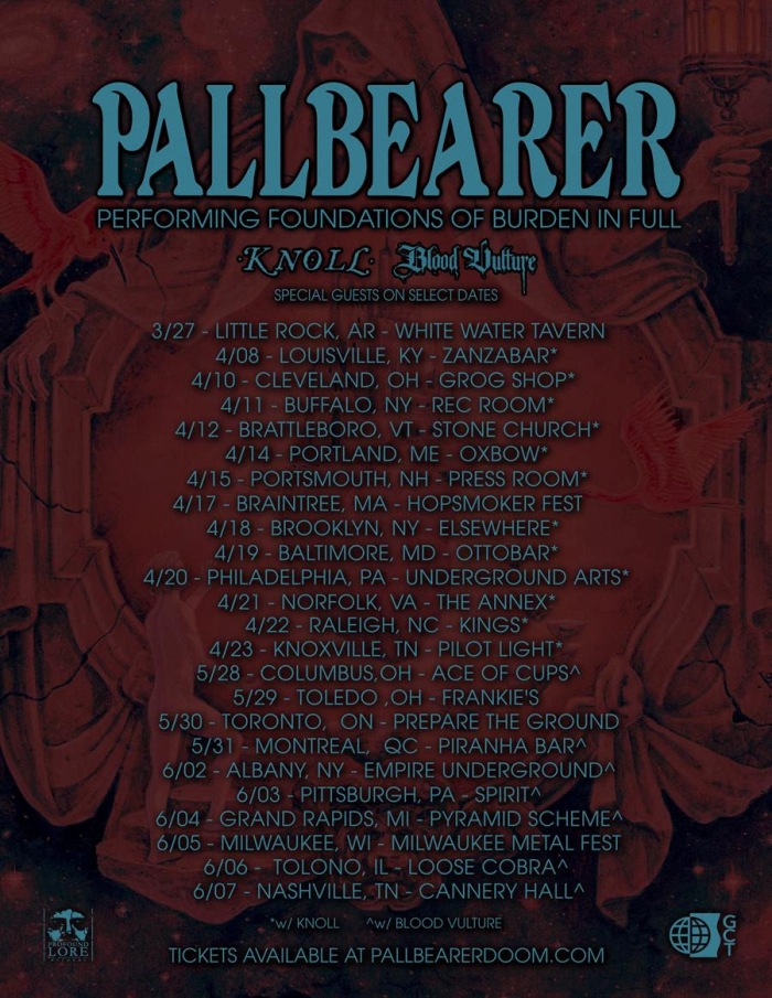 Pallbearer have added some new shows to their ongoing North American tour celebrating their acclaimed sophomore album Foundations of Burden. The trek now extends in late May and early June with Blood Vulture providing support. You can find all confirmed dates below. Tickets for newly added dates go on sale this Friday, March 20th at 10:00 AM local time here.