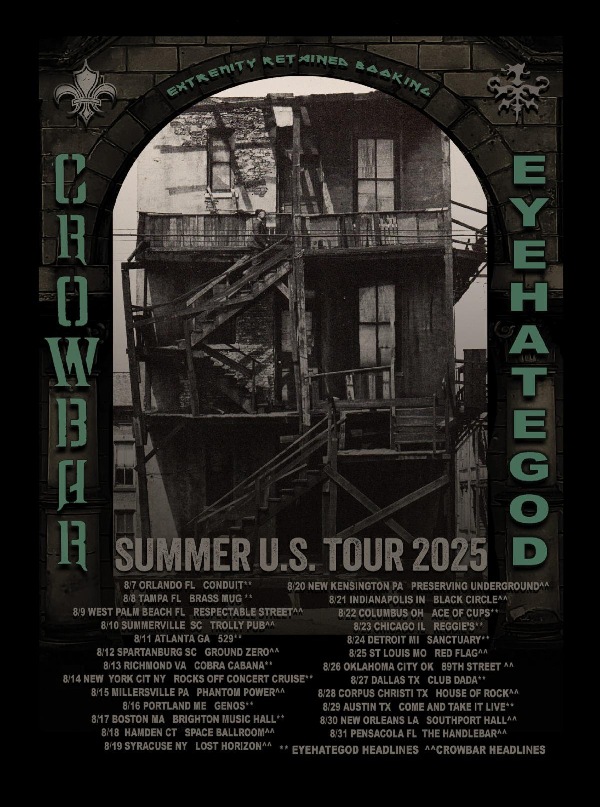 The journey will commence on August 7th in Orlando, Florida and close on August 31st in Pensacola, Florida. The tour includes a performance on the Rocks Off Concert Cruise in New York City. In October, Crowbar will perform on Lamb Of God’s Headbangers Boat.