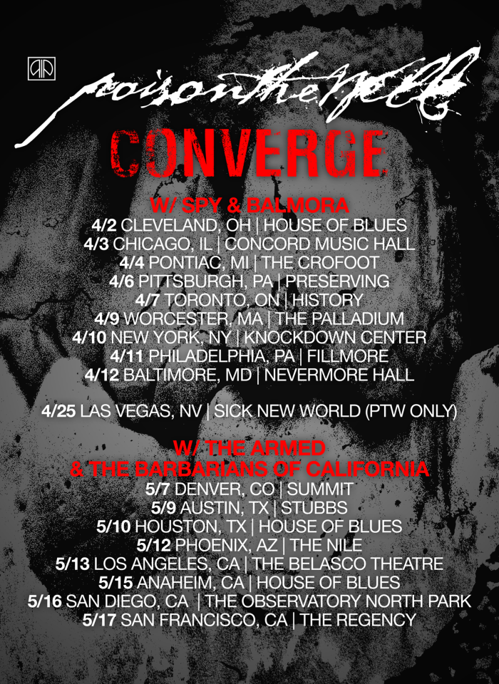 If you rejoiced to learn that Poison The Well would be releasing a new record this year – their first in over fifteen years. Then you’ll be happy to learn that the band have announced a spring headlining North American tour. Supporting them throughout all dates will be Converge, select dates featuring Balmora, SPY, The Armed, and The Barbarians of California. Artist presale tickets are available now. General sale begins Friday, January 23rd at 10:00 AM local time.