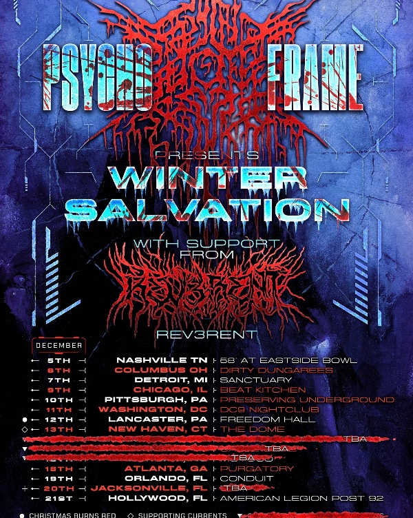 Psycho-Frame have announced a December headlining trek of the U.S. The trek, christened Winter Salvation, will feature support by Rev3rent. A handful of dates have yet to be confirmed.