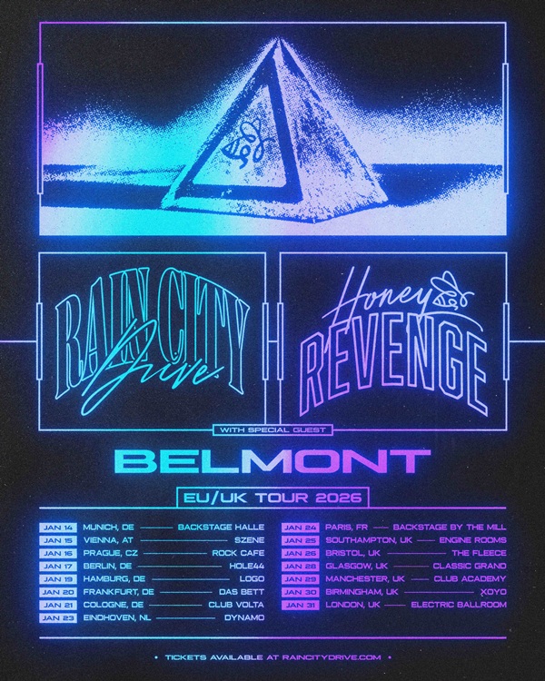 Rain City Drive, Honey Revenge, and Belmont have announced that they will embark on a tour of Europe and the UK early next year. Tickets go on sale Monday, September 29th at 10:00 AM GMT at this link.