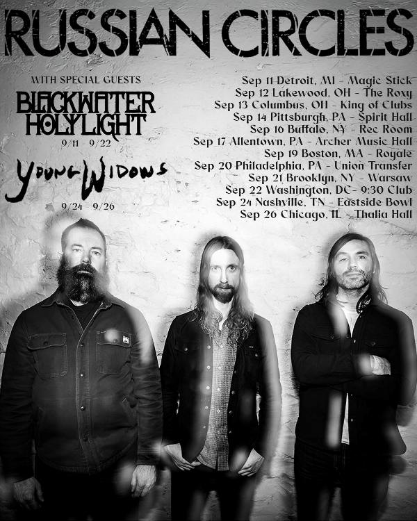 Russian Circles have announced one last round of dates in support of their eighth studio album, Gnosis (Sargent House). Joining them for a majority of the September performances will be Blackwater Holylight, with Young Widows closing out the final two shows. Tickets go on sale tomorrow, June 27th at 10:00 AM local time.