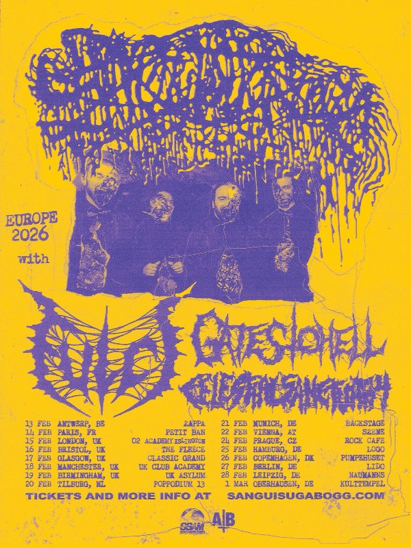 Sanguisugabogg will head overseas early next year for a headlining tour in support of their upcoming record Hideous Aftermath. Fulci, Gates To Hell, and Celestial Sanctuary will join them on the trek. Tickets are on sale now at sanguisugabogg.com.