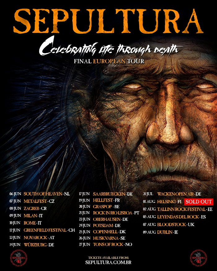 Next summer will see Sepultura embark on their final trek of the continent. Tickets are available now at this location.
